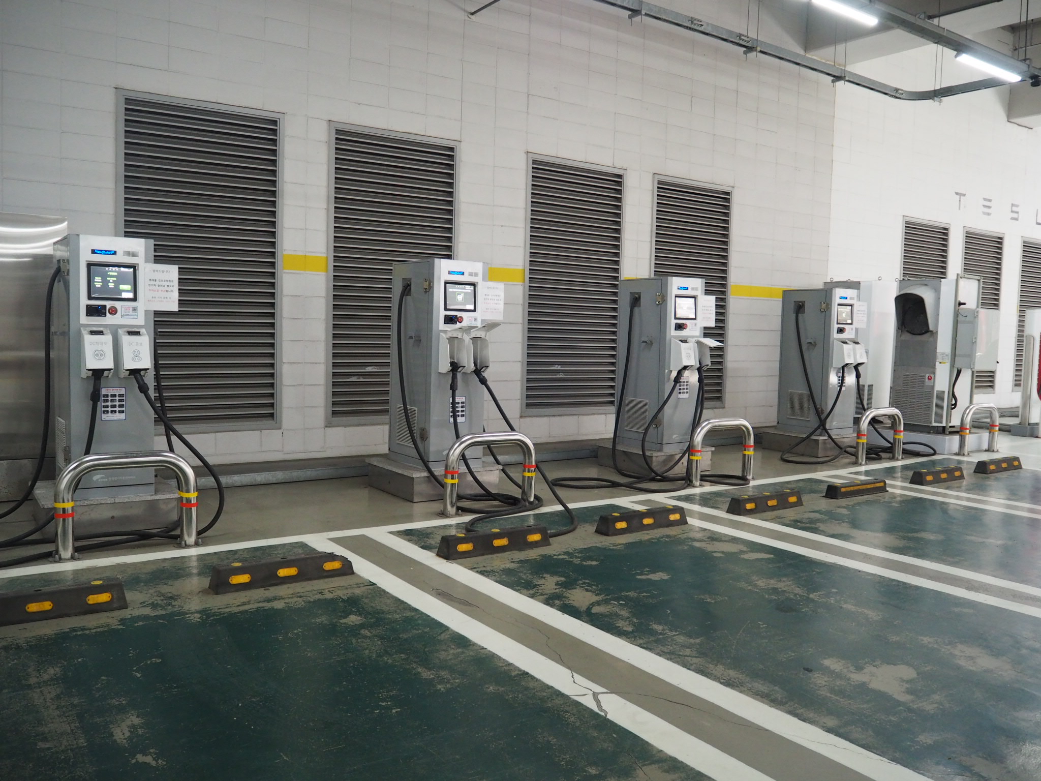 지하 주차장에 다양한 충전기가 설치되어 있어 전기차 차주에게 두가지를 모두 해결 할 수 있는 좋은 곳이죠.