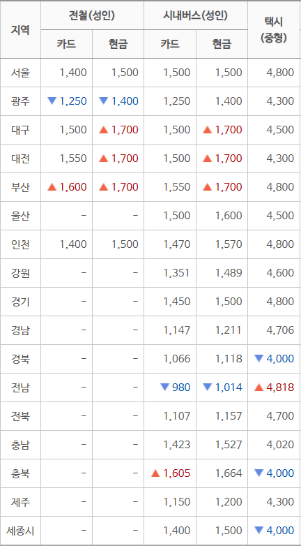 🚇전국 대중교통(지하철,버스,택시) 비교